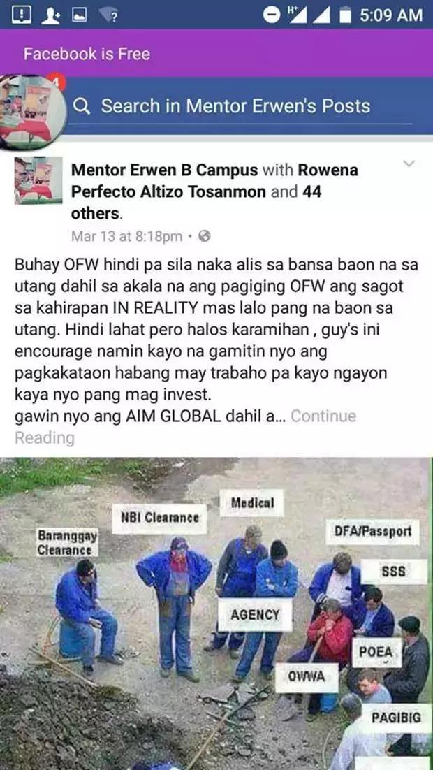 Aside from downplaying the netize, the AIM Global consultant apparently criticize the Overseas Filipino Workers (OFWs) for they are already in debt before leaving the country.