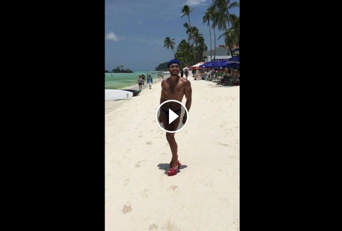 Catwalk King Sinon Loresco dominates on social media as he sizzles in swimwear and catwalking in the island paradise of Boracay while wearing 7 inches high heels.