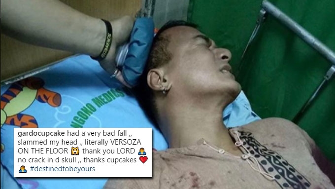 “[H]ad a very bad fall ,, slammed my head ,, literally VERSOZA ON THE FLOOR ? thank you LORD ? no crack in d skull ,, thanks cupcakes destinedtobeyours,” he noted in an Instagram post.