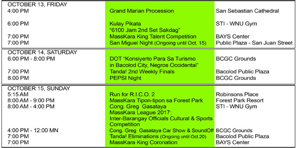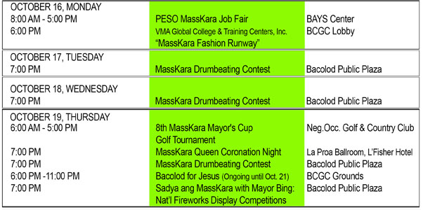Here’s the schedule of events and activities in Masskara Festival 2017: