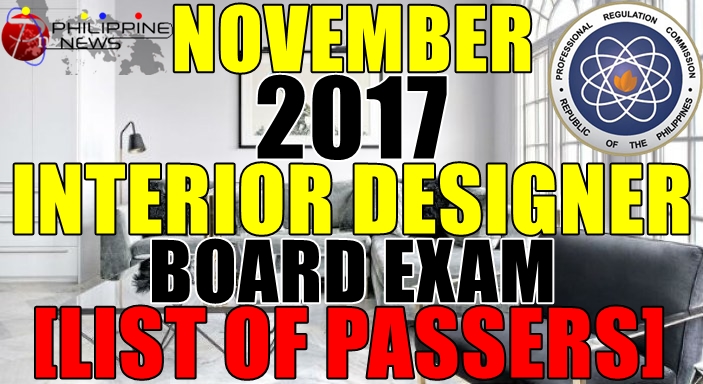 The results or the list of passers of the November 2017 Interior Designer Board Exam as well as the Top 10 Passers and Top Performing and Performance of Schools will be available on this website as soon as released by the Professional Regulation Commission (PRC), on November 17, 2017 or six (6) working days after the last day of the examination.
