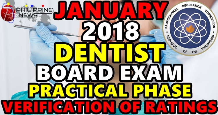 Examinees may verify their ratings and test results in the January 2018 Dentist Board Exam (Practical) via the Verification Page of PRC which will be available few working days after the release of the results.