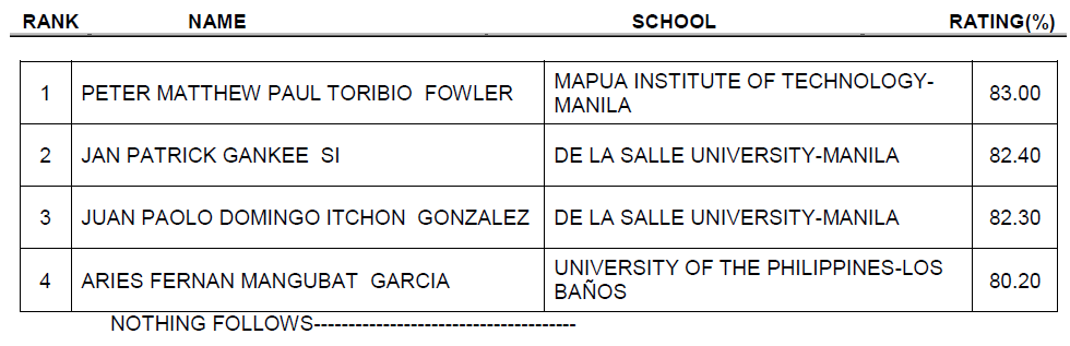 Here Are The Top 4 Passers For May 2018 Chemical Engineer Board Exam Results