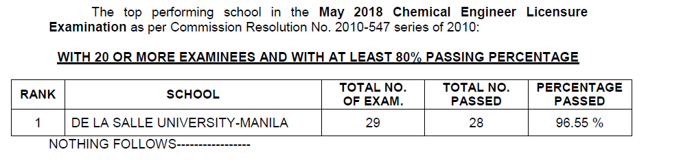 Here Are The Top Performing & Performance Of Schools For May 2018 Chemical Engineer Board Exam Results