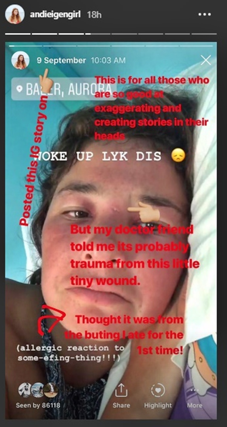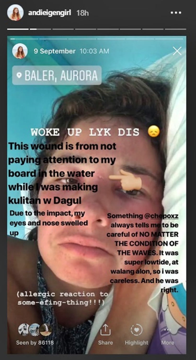 Celebrity surfer Andi Eigenmann shocked netizens when she posted a photo of her face that seemed to be beaten and she clarified this.