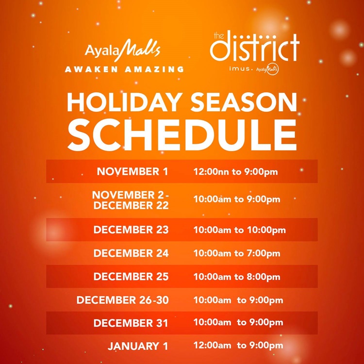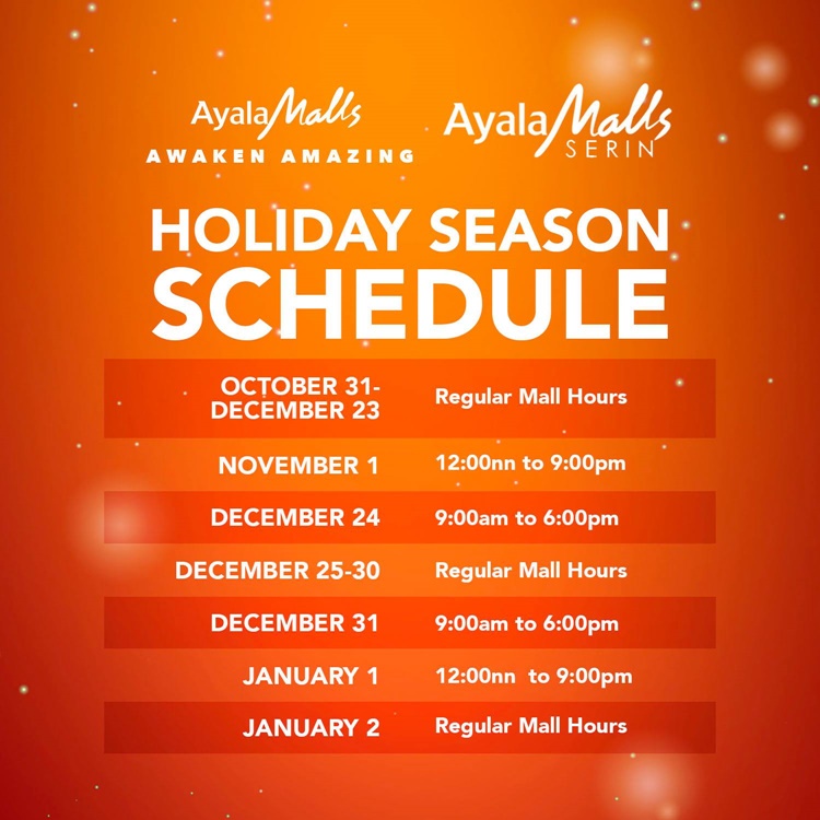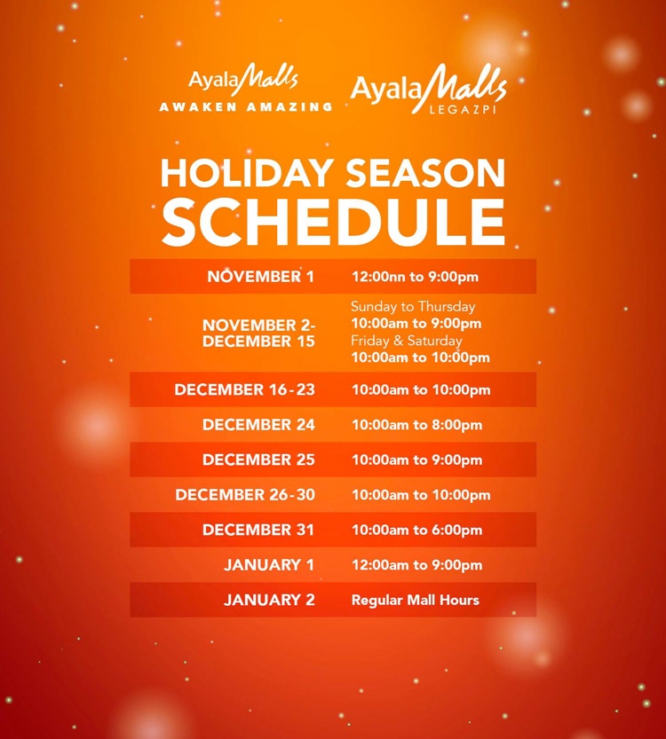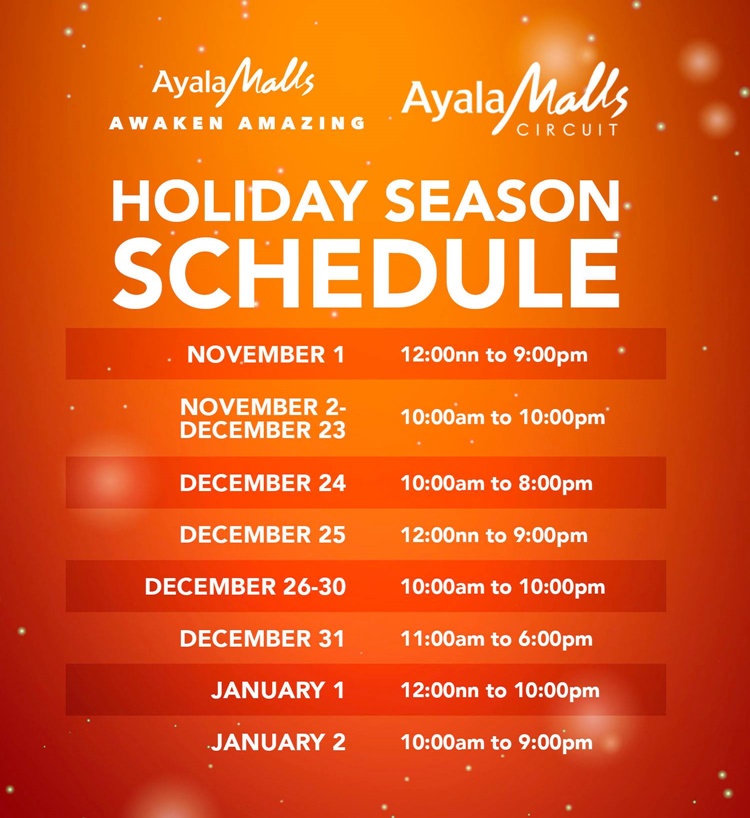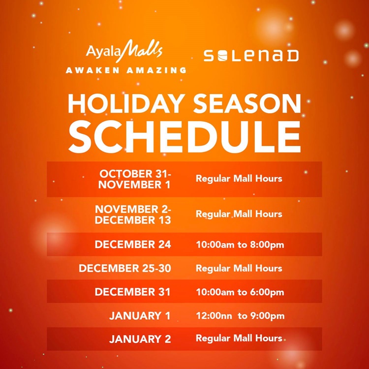 Here is the list of new mall hours released by SM and Ayala Malls for the 2018 Christmas holidays starting today until January 2019.