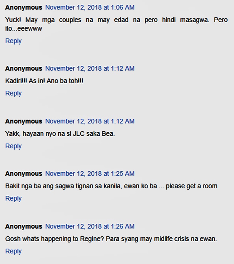 Here are some “cringe” comments to the photo of Regine and Ogie which are posted on FP’s site.