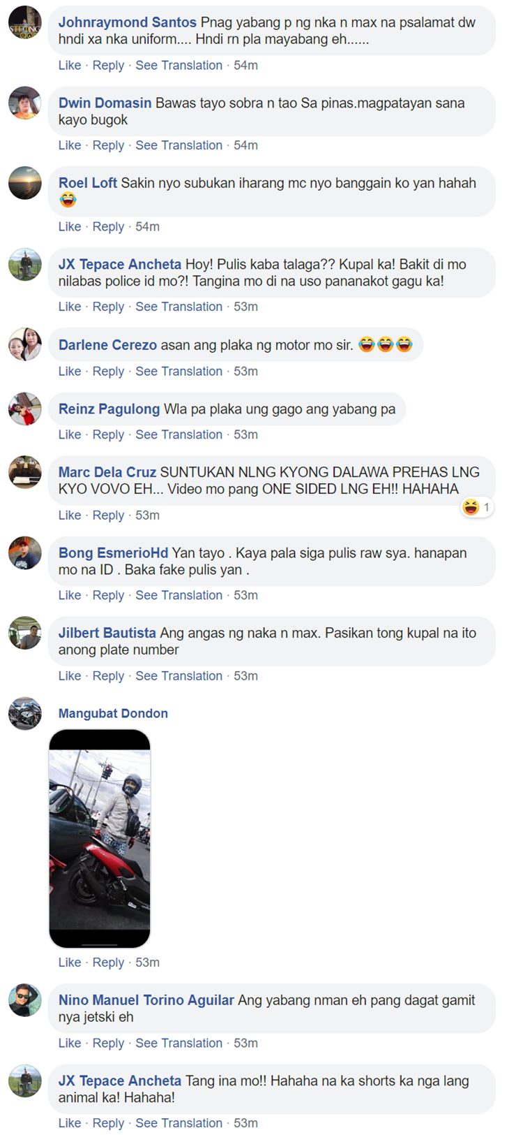 “Firsttime maka incounter nagalit si kuya n,max dahil nilusutan sa bangkingan sa C5 tapus hinarang niya mutor niya pagdating ng stop,light…nagalit sa amin tumatakbo lang naman kami ng maayos jajaja”