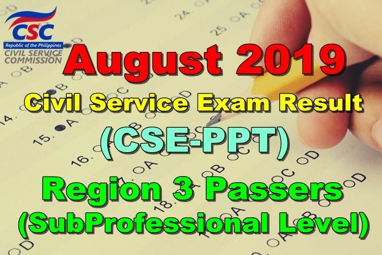 Here is the Civil Service Exam Result August 2019 Including Region 3 Passers (SubProfessional Level)