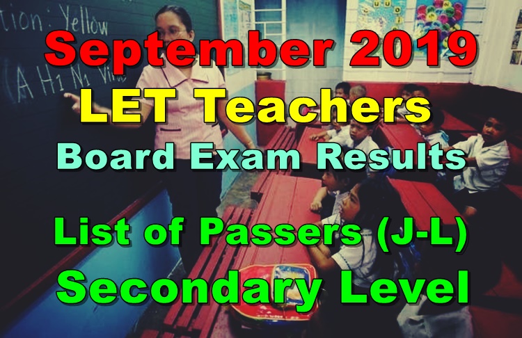Here is the LET Board Exam Results September 2019 including the list of passers (J-L) Secondary Level from PRC.