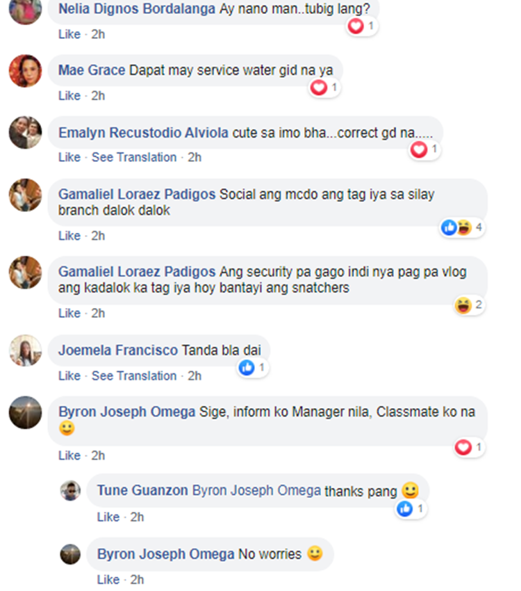In the video, it can be seen that the male customer is expressing his disappointment towards the fast-food chain for charging them P1 per cup of water although it was totally free in other McDonald’s branches.