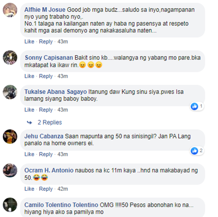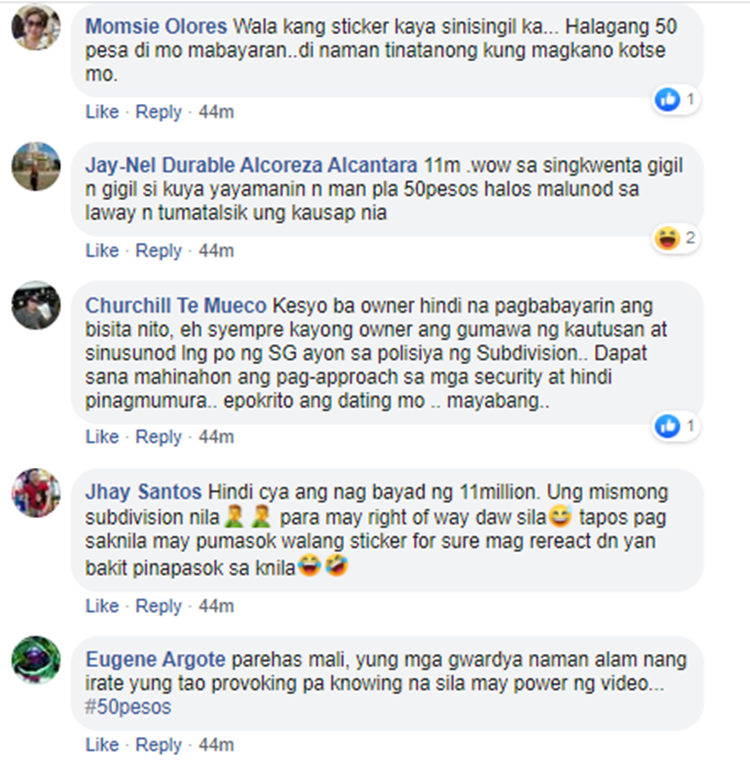 In the video, it can be seen that the homeowner ran out of patience and criticized the guards after apprehending him for having no entry sticker. The guards charged him to pay P50 for having no sticker.