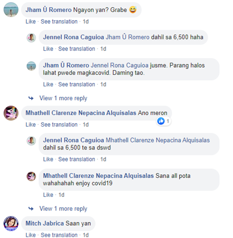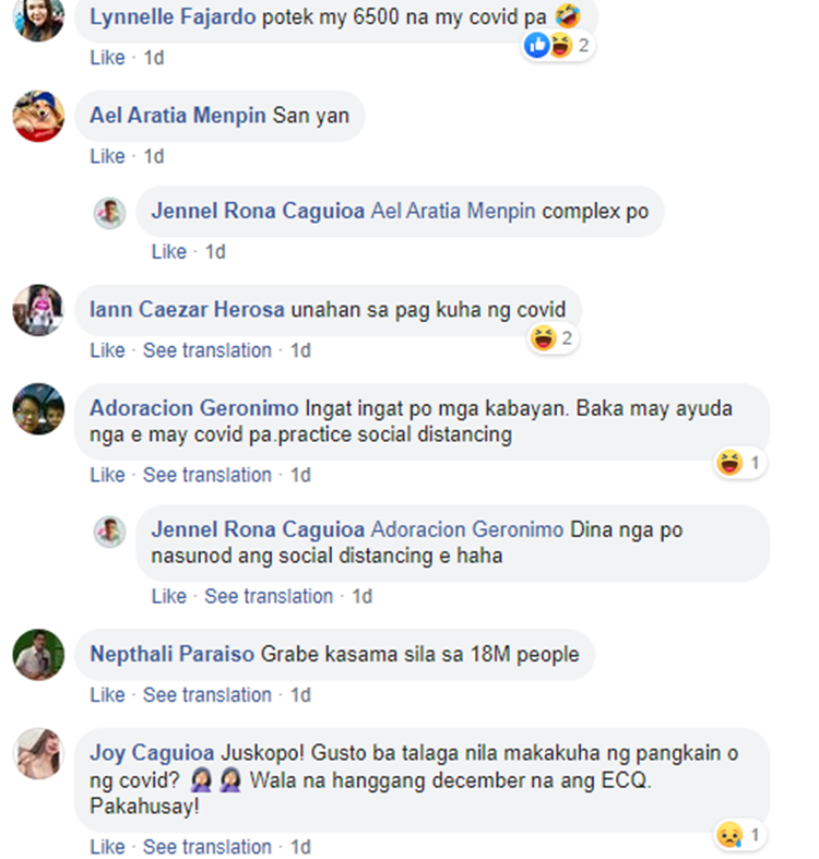 A Facebook user named Jennel Rona Caguioa has shared the photo of huge number of people queuing along the street during the alleged distribution of cash assistance for poor families. The photo garnered various reactions from the online community.