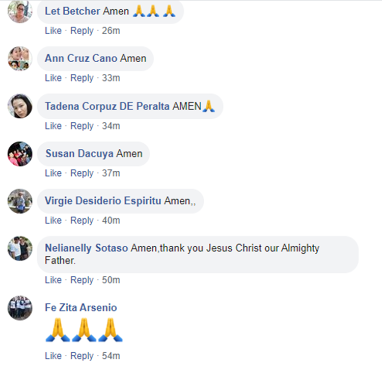 Kung sumabay ka sa ating prayers at naniniwala sa Milagro ng ating Panginoon please type AMEN”