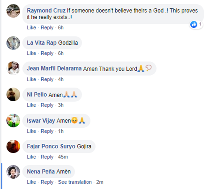 “Guys! nagpakita na naman po ang ating Panginoon sa kalangitan, senyales daw po ito ng Pag-asa dahil mahal na mahal tayo ng Diyos at lahat ng takot at agam-agam natin ay aalisin nya, patuloy lang tayo manalig at magtiwala sa kanya upang ang pandemic ay kanyang iwawaksi at susupilin nya ang salot na lumaganap sa ating mundo.”