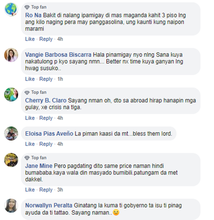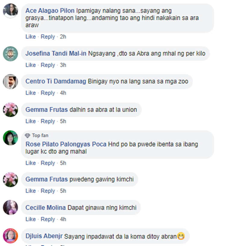 According to the post, the owner decided to dump the vegetables because no one buys them despite its cheap price at the market. The price of Chinese cabbage in La Trinidad trading center is only P3 per piece.