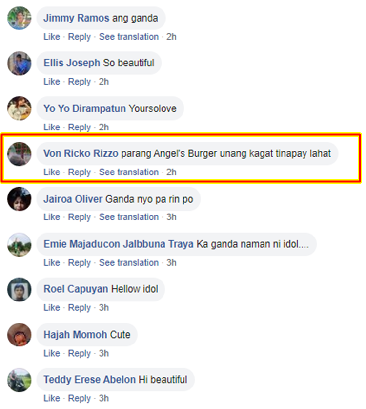 A disrespectful netizen leave a distasteful remarks to Kathryn Bernardo’s photo saying: “Parang Angel’s Burger unang kagat tinapay lahat”.