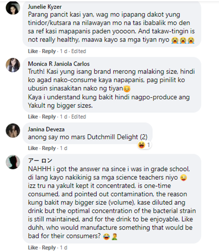 Recently, a Facebook user named Roseller Kempis send a message to Yakult Philippines asking the reason why they are not making bigger bottles. The post goes viral online and garnered various reactions from the netizens.