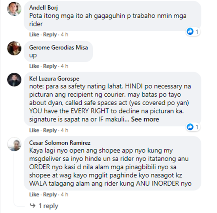 Im not generalizing delivery riders pero most likely the only way for them to know that our delivery buying behavior is like this wherein iba iba nag rereceive and pay, is for someone to tip of these types of people.