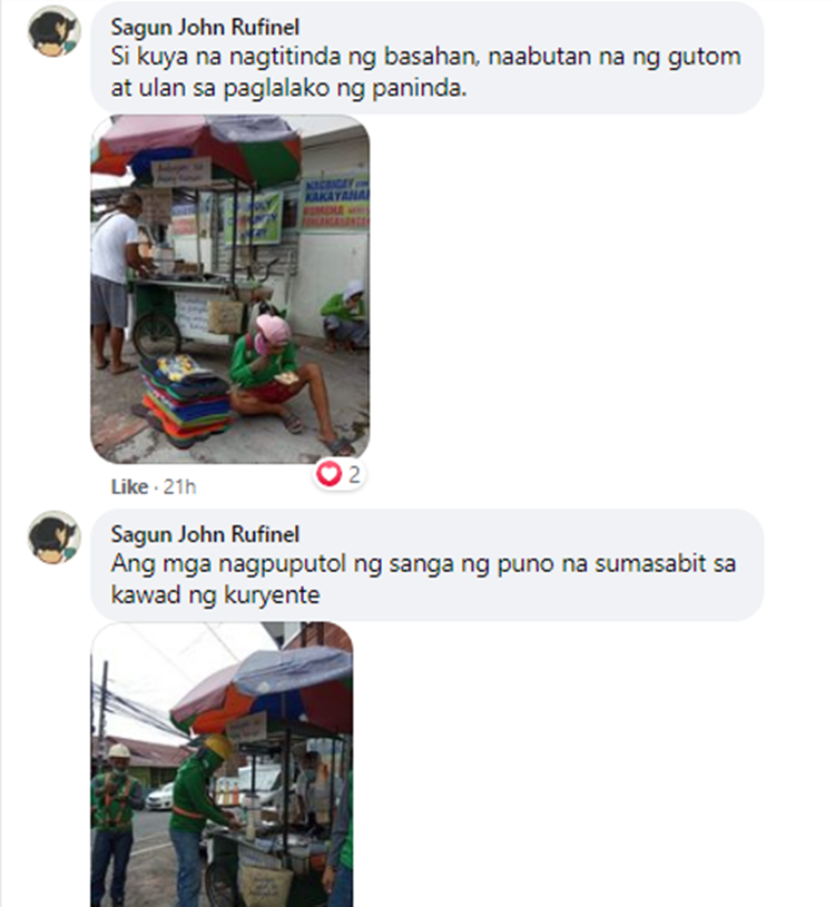 Rufinel said that they have decided to give free street foods to the residents including street sweepers, motorists, trike drivers, cyclists, constructions workers, delivery employees, vendors and other people who need food.