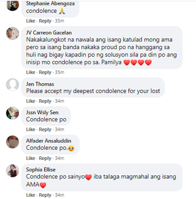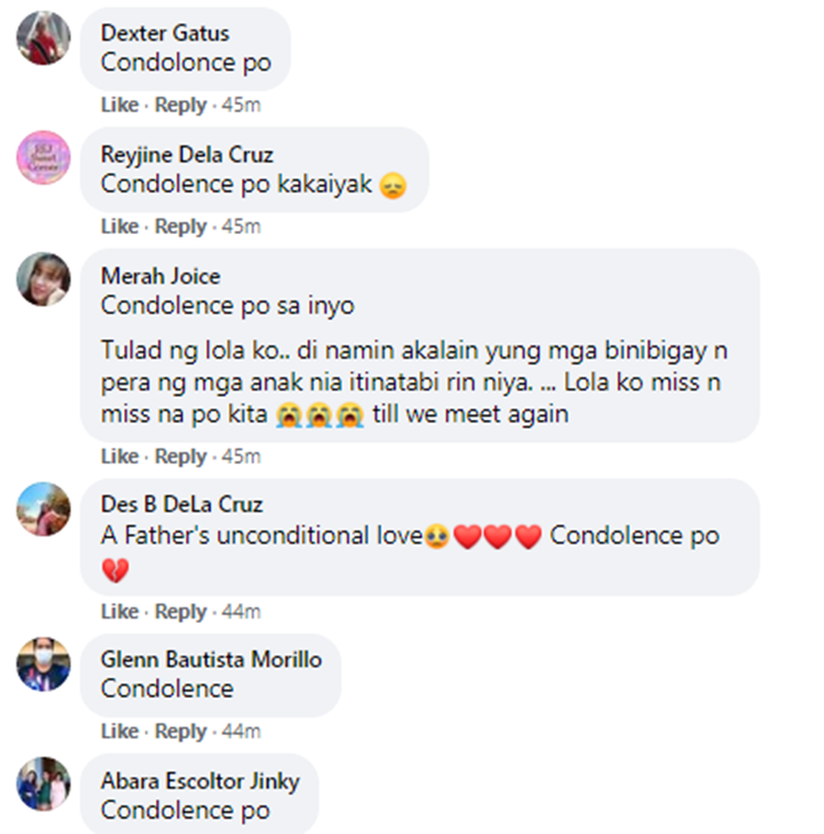 Maraming salamat po tay, hangang sa huli hindi nyo po kami pina problema. Nakakalungkot lang tay, sana dalawin mo kami para mabawasan ang sakit tay Mahal na mahal ka namin tay. Napaka bait mo sa lahat kaya siguro kinuha ka ng maaga”