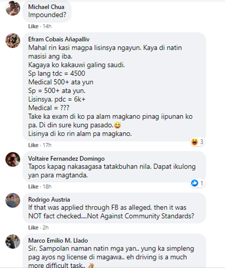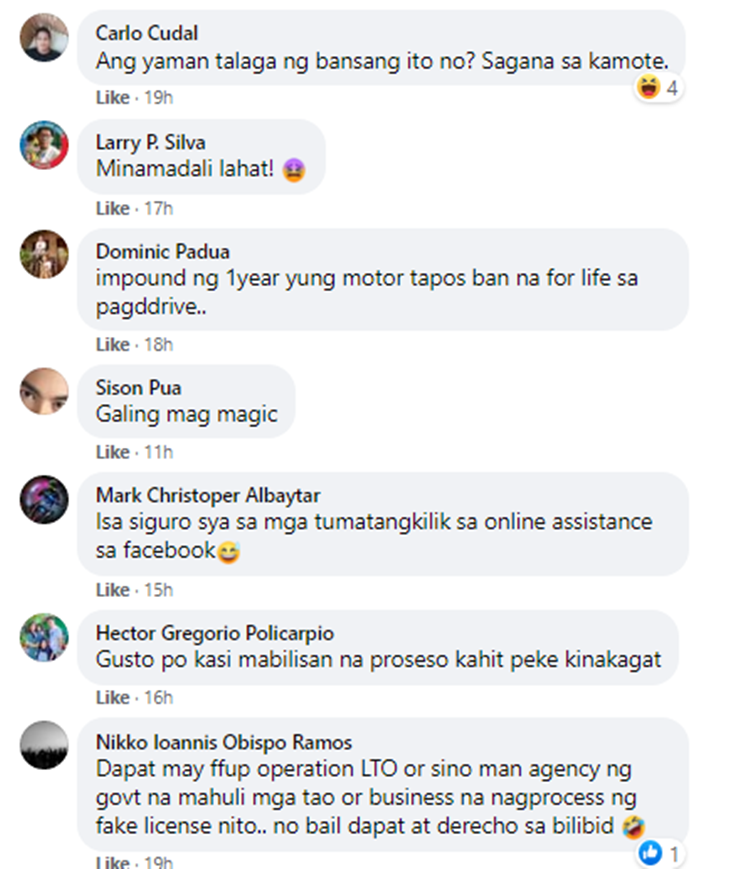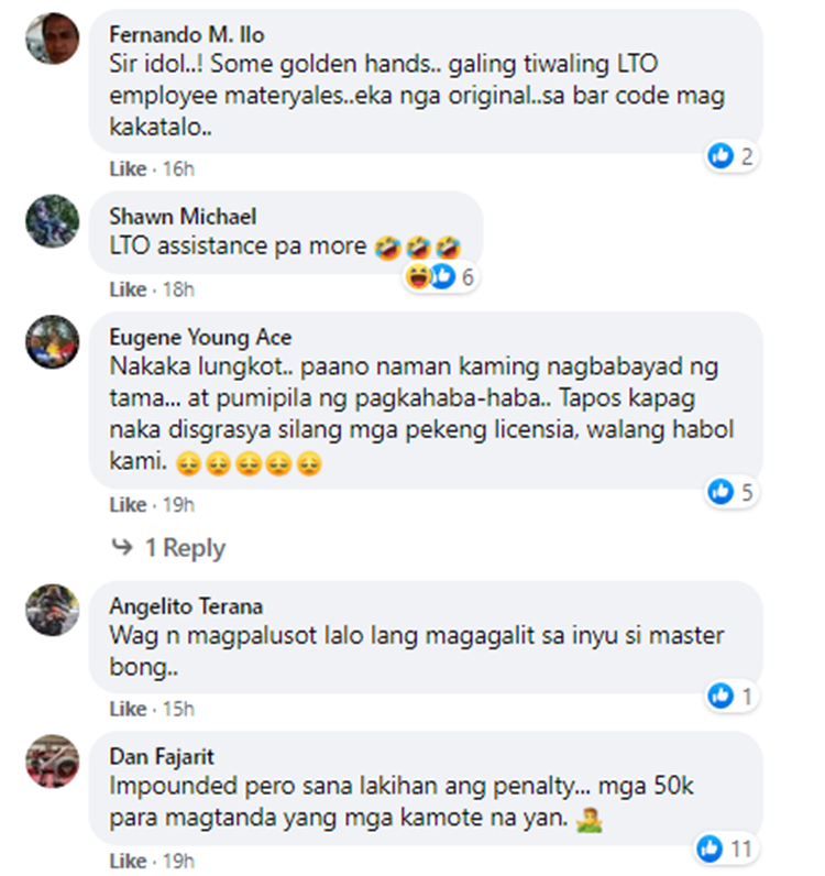 Edison Bong Nebrija has posted on his Facebook page the photos of a fake driver’s license they have recovered from a motorcycle rider. The post garnered various reactions from the online community.