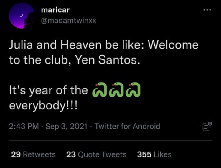 Because of that, netizens tagged Heaven as the “Julia 2.0”. Now, netizens are adding Yen Santos on their posts. Here are some posts of netizens on Twitter about Julia, Heaven, and Yen.