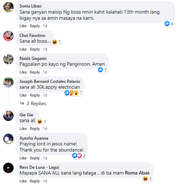 Aside from the 13th month pay, the workers will receive Christmas bonus on December, according to the generous employer. She posted the photos last November 4, 2021.