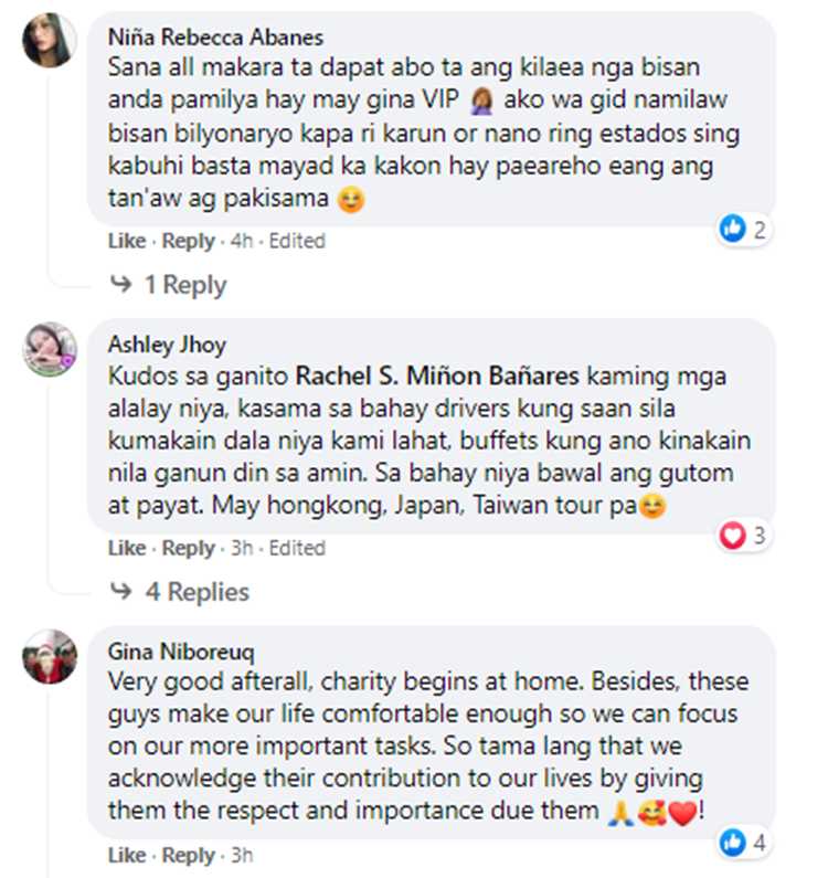 A Facebook user named Luis Macalinao has shared the photos of several household workers sitting at a table like other guests during employer’s wedding. The post earned praises from the online community.