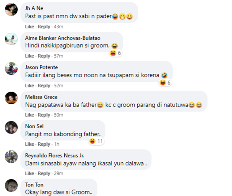 The Facebook page “VIRAL Videos PH” has shared the video footage of a priest confessing that the bride was his ex-girlfriend during its wedding ceremony. The video elicits comments from the online community.