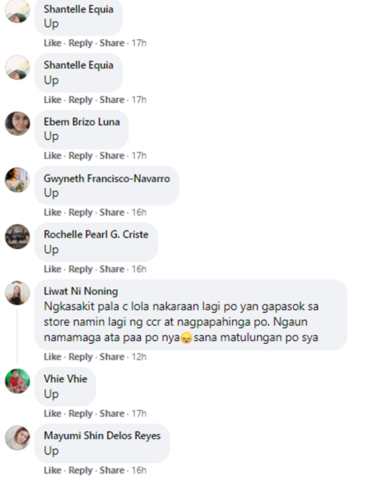 Justo saw the elderly woman in front of Cainta Hospital around 8:30 in the morning. The grandma has been abandoned and remained in the same spot until evening. However, her colleague never returned.