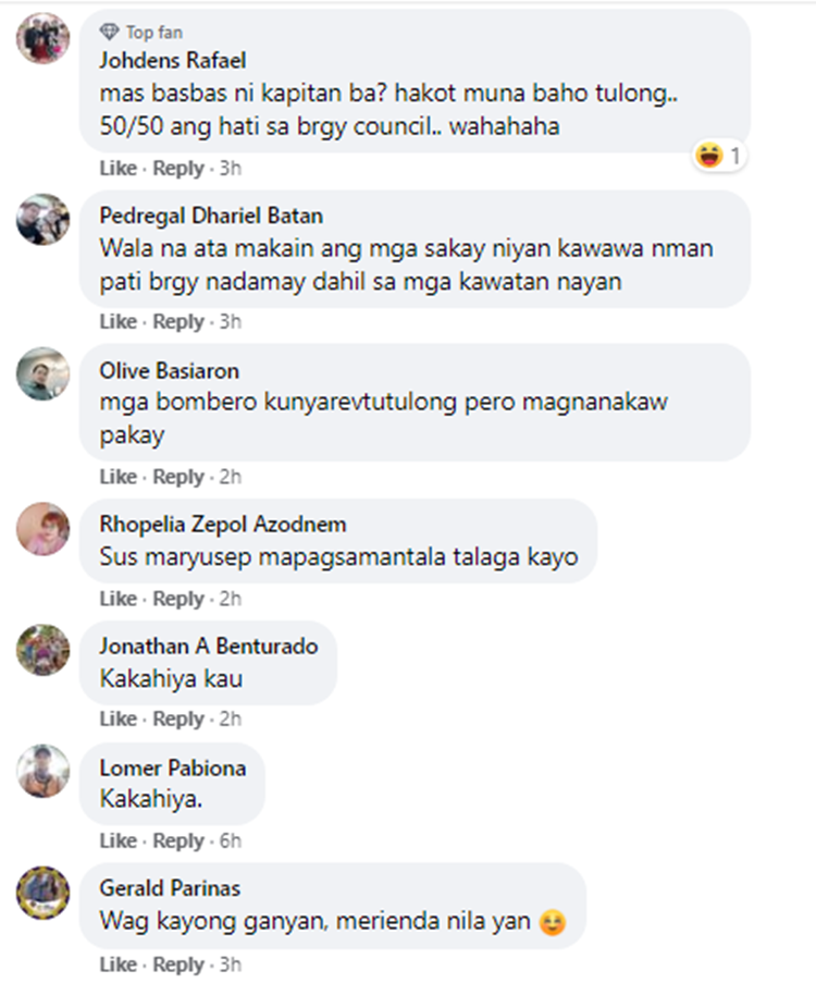 “Nagawa pa nilang nakawan ang nasunogan, inuna pa nila mag hakot kaysa tumulong sa kapwa bumbero.”