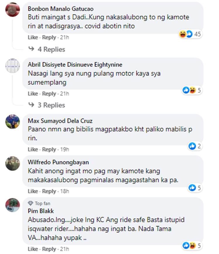 The video footage of a kamote rider with multiple traffic violations who got into a road accident elicits comments online.