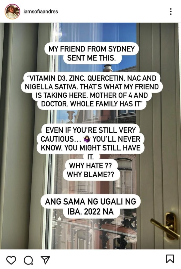 While she received concerned comments after being infected and recovering from it, the actress also received nonchalant comments about her coronavirus bout. In an IG story post, she shared that she doesn’t usually read comments of other people online but she chanced upon to see the comments of netizens when her story was posted on an entertainment website.