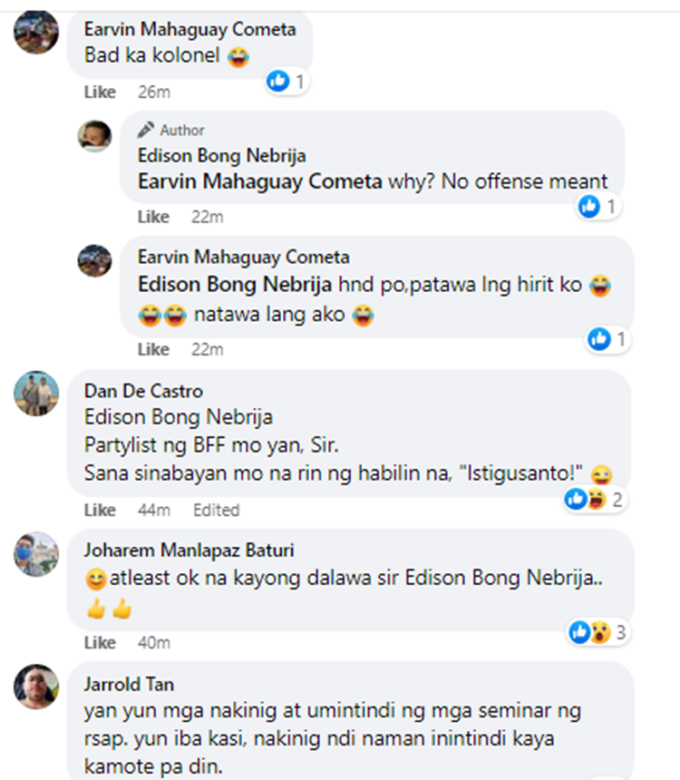 Bong Nebrija to 1Rider Partylist Supporter Asking for Selfie “Huwag maging kamote”