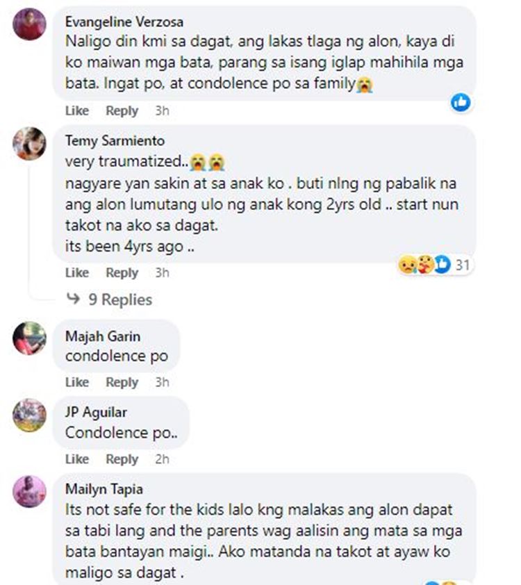 “Naliligo sila hawak niya [Figueroa] yung anak niya, ‘yun… dahil siguro sa lakas ng current ng tubig ng dagat nabitawan niya yung anak niya at tinangay ng alon. Yung bata, lumubog agad,” PNP Maritine-Pangasinan investigator Police Corporal Irwin Albao said.