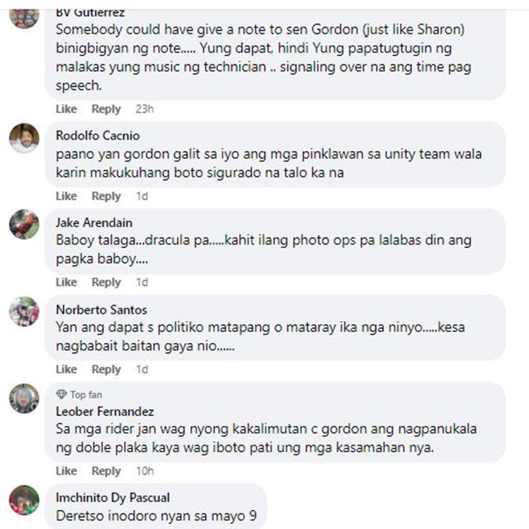Senator Dick Gordon earned various reactions from the netizens for allegedly showing rude behavior during a campaign rally.