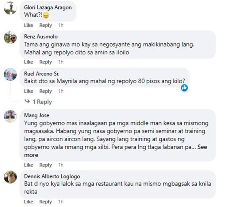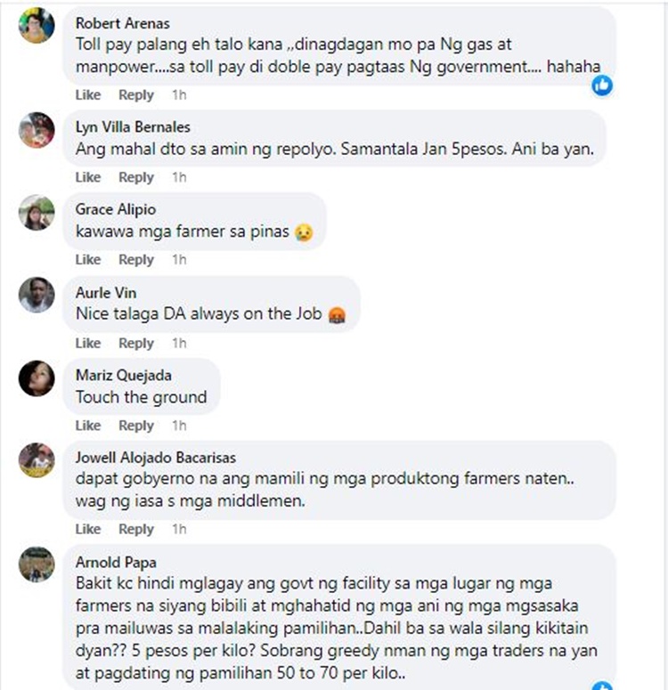 DA Senior Undersecretary Domingo Panganiban said that no one from Manila, Pangasinan, and Quezon City can buy those crop products because farmers only sell them at their local markets. He also said that the agency has no value chain activities after the harvest.