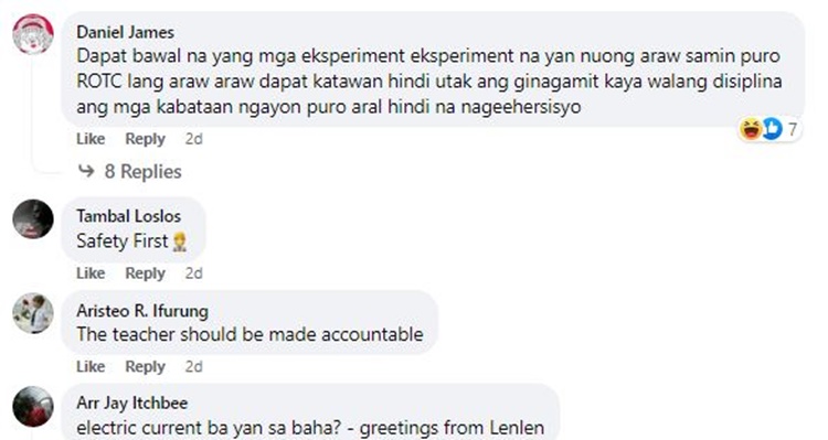 The authorities said that the teacher instructed the students to conduct an experiment on separating components of salt-water solution through evaporation. The teachers used baker cups, ethyl alcohol, cotton, alcohol stove, and a wire gauge during the activity.