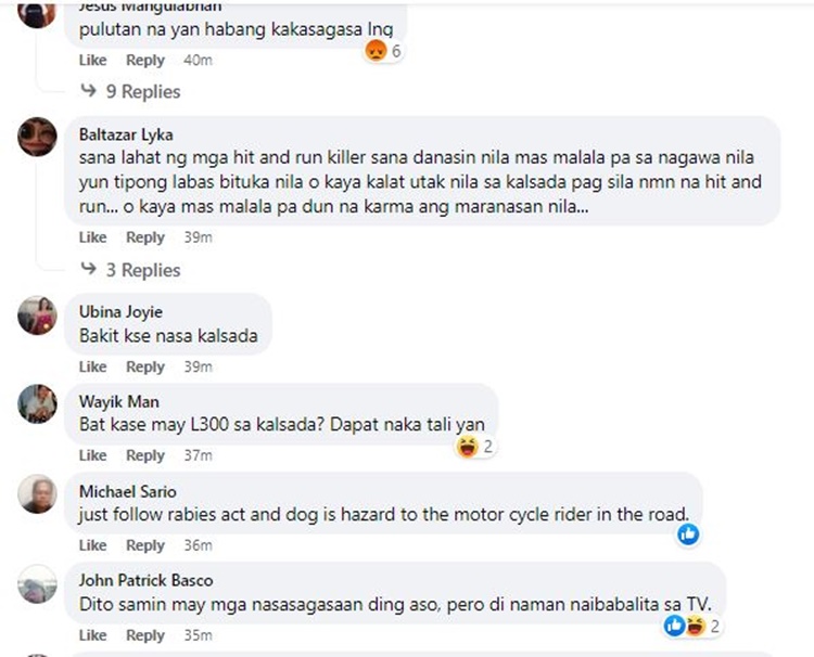 “Pag salubong saktong tumakbo naman siya (aso) sa labas. Sakto dumadaan naman siya (L300 van). Hahabulin ko, huhulihin ko sakto pagdaan niya nagulungan naman, nabundol,” Caibog said.