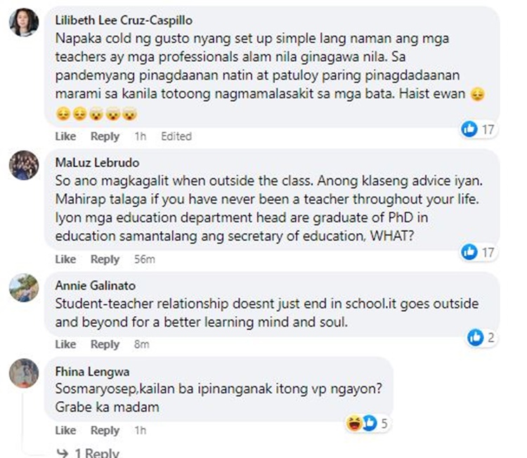 Vice President and Education Secretary Sara Duterte explained that both teaching and non-teaching employees should observe professionalism. She advised educators to refrain from friendly relations with their learners outside the school setting.