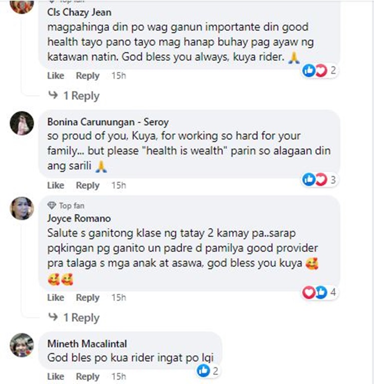“Tatay, uwi ka na. 24 oras ka na nagbibiyahe.” saad ng nagmessage sa Rider.