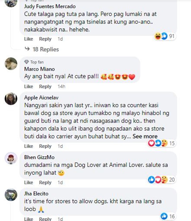 “Mabilis naman po lumabas [y]un[g] may ari ng dog para kargahin sya. Sobrang bait nun dog kasi naka upo lang talaga sya. Tuwang tuwa lahat ng dumadaan na tao sa package counter,” Angela added.