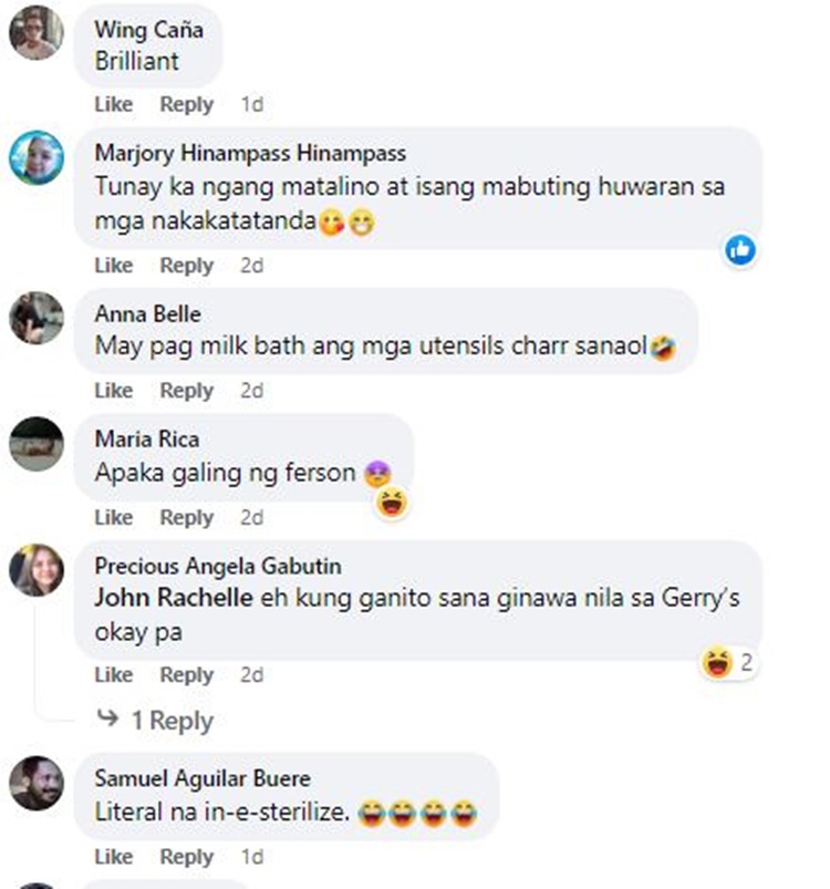 “sabi ko i-sterilized mo yung mga utensils tapos ini-sterilized mo nga yung mga utensils”