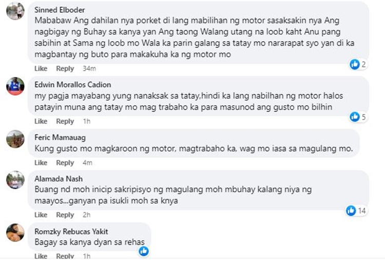 According to the Facebook page “92.7 Brigada News FM Lucena,” a 30-year-old man stabbed his own father after he refused to buy him a motorcycle. The video has elicited reactions from the online community.
