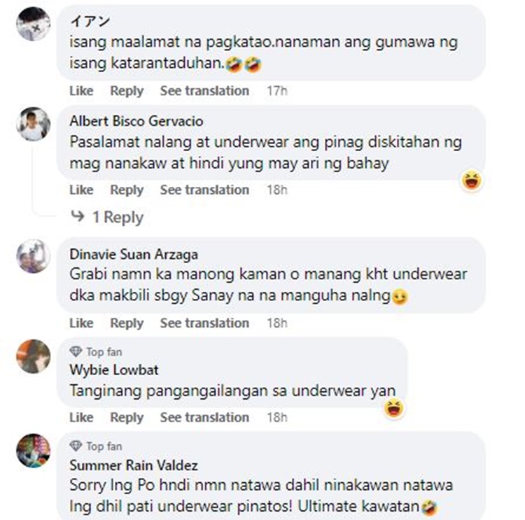 Mrs. Arid reported that the burglars took several items, including a ViVo cellphone worth P6,000, a piggy bank containing P4,000 cash, and some folded underwear that was kept in the drawer.