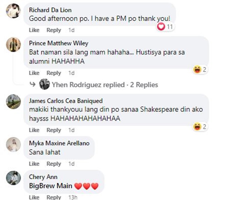 In an interview, Ma’am Arlene shared that she treats her advisory class every quarterly exam, giving them a special treat like a parent would to their own children. She also left a message for her advisory class, which she named after William Shakespeare.