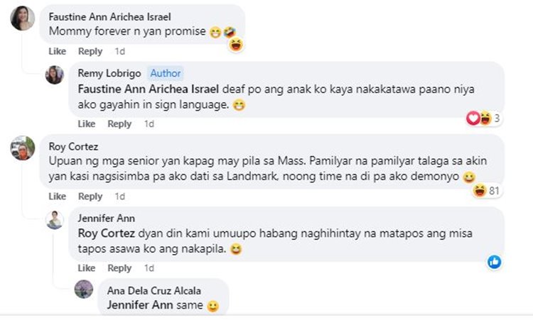 “Napangiti lang po yung saleslady nung sabihin nya na hindi po for sale, kundi pahingahan ng customers. Siguro po, ’di rin siya tumawa para hindi na ako ma embarrassed. Pero pag alis niya, humagalpak na po ng kakatatawa ang anak ko,” Lobrigo said.