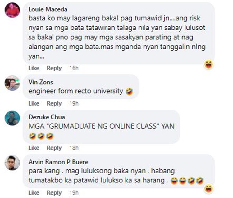 “Panawagan ko po sa lahat po ng gumawa or gumagawa ng pedestrian lane, lalo po dito sa lugar namin [sa] North Caloocan. Tingnan niyo po ‘yung ginawa niyong pedestriane lane, imbis po na magamit at mapakinabangan ng marami, napagtawanan pa po ng marami. Sayang lang po gumastos sa project na ‘to,” he added.
