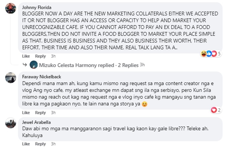 “We do not support Vlogger or vlog endorsements, no matter how famous you are in the whole of Negros Occidental, if the exchange is that we pay for your transportation to and from, and then serve you all of our best-sellers from the menu. If you truly want to help small businesses like ours, you should support our business by making a purchase and vlogging about your experience. Instead of taking advantage, we would appreciate Vloggers who willingly spend from their own pockets to buy from us and vlog about us, rather than expecting free food and drinks in exchange for a vlog. Thank you.”